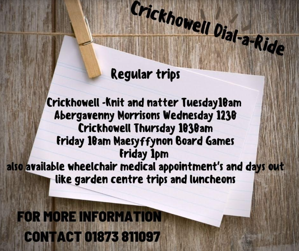 We are a registered charity, members’ only organisation that costs just £12 a year for people over 60 . Crickhowell is a volunteer run service.