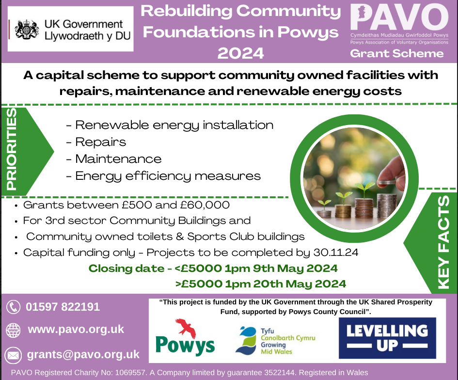 > £5,000 grants – 1pm Monday 20th May 2024