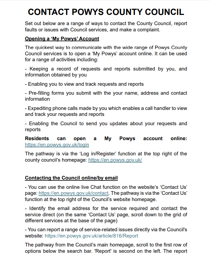 Ways to Contact Powys County Council 26Nov 2024 Share this: Click to share on X (Opens in new window) X Click to share on Facebook (Opens in new window) Facebook Like Loading... Related