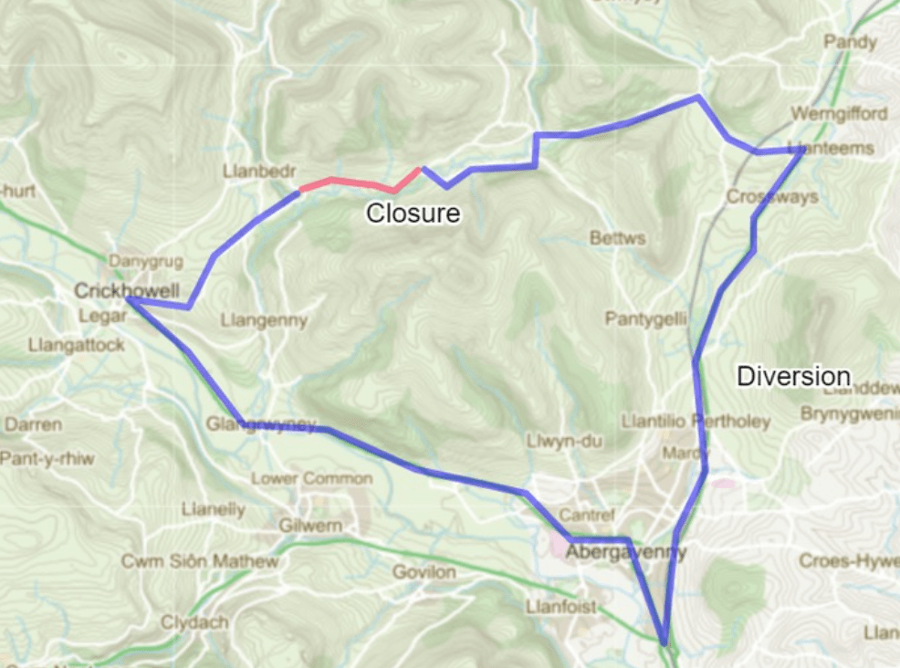 Repairs to the road between Llanbedr and Fforest Coal Pit closed in February 2024 due to a landslip are scheduled to commence in March 2025. Machinery will be on site from 3 March 2025 with works anticipated to start on 10 March 2025.