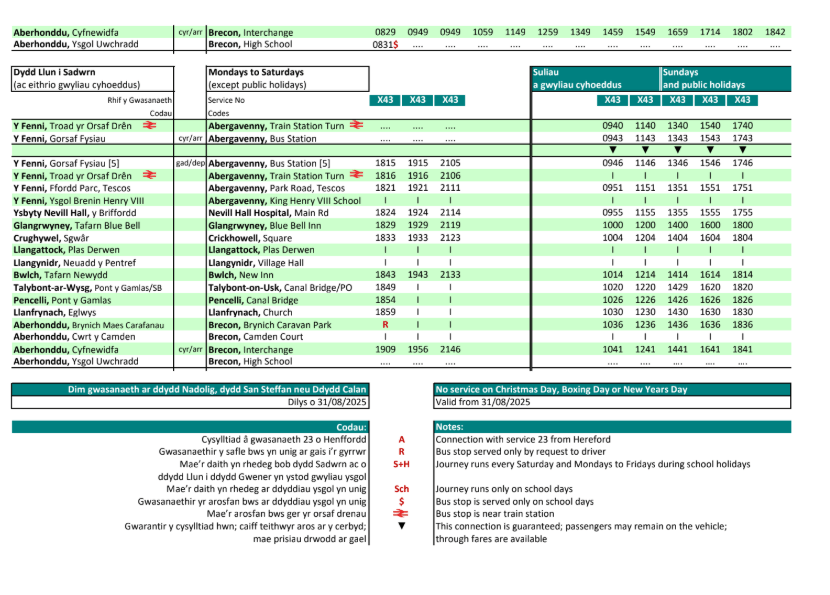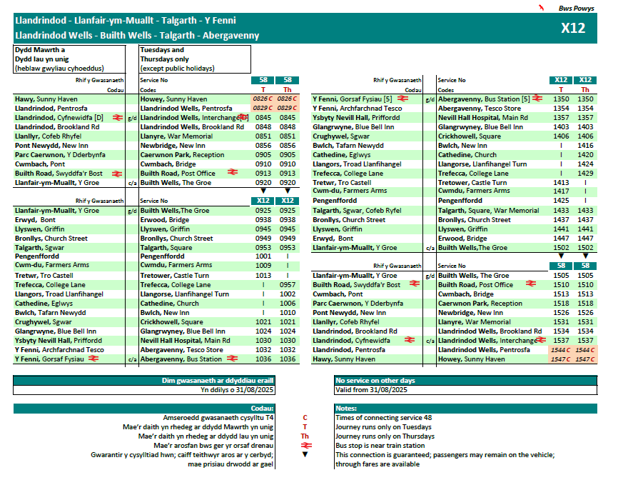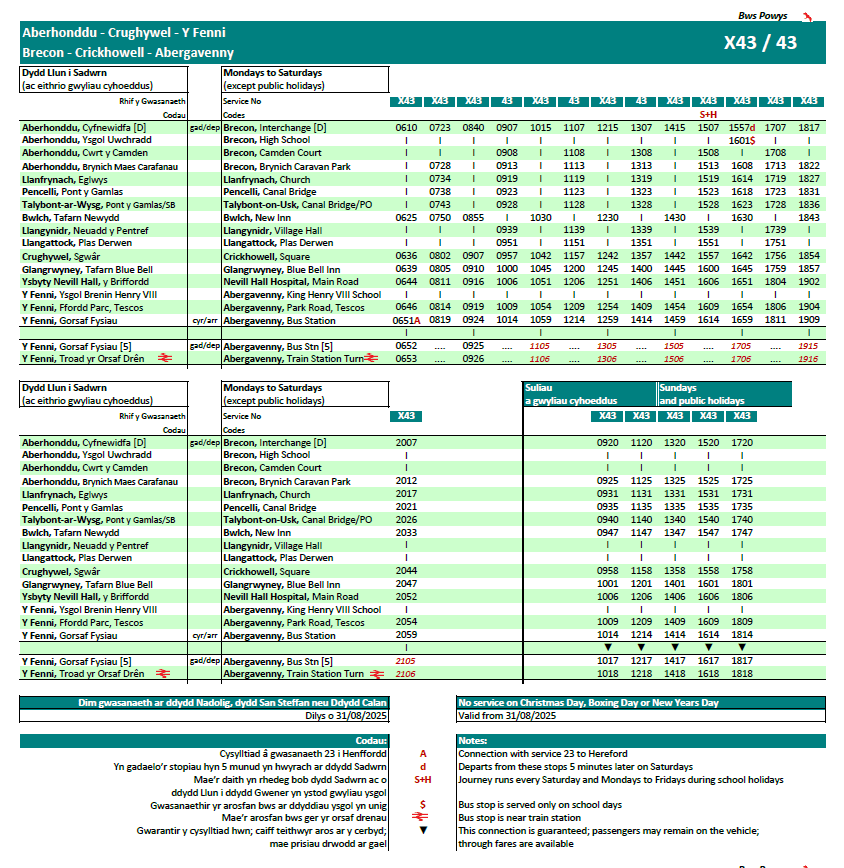 New bus timetables 2Sep 2025 From 1st September 2025 Please see Traveline Cymru for full information Share this: Click to share on X (Opens in new window) X Click to share on Facebook (Opens in new window) Facebook Like Loading... Related