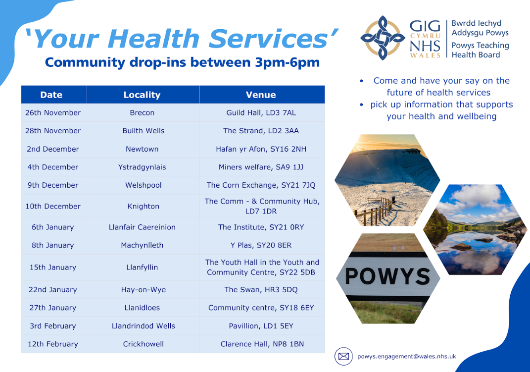 - A change to the opening hours (8am to 8pm) for the Minor Injury Units (MIUs) in Brecon and Llandrindod Wells.