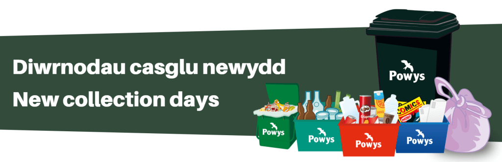 Most households in Powys will have a new recycling and waste collection day starting from Monday 2 March 2026.